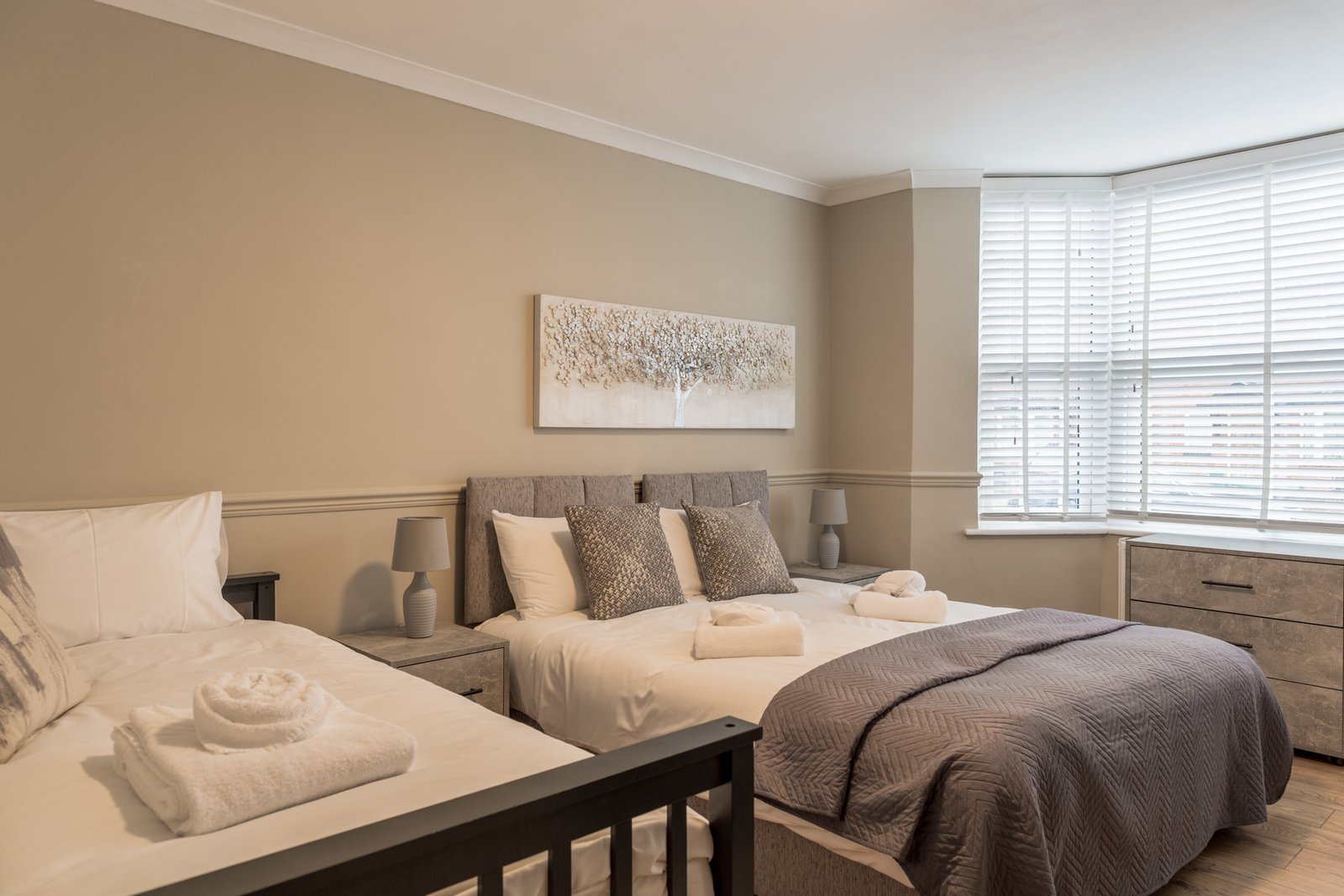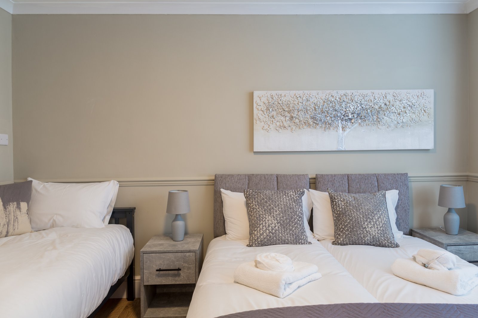 Welcome to Cheltenham Corporate Accommodation, a furnished 5-bed holiday cottage for groups and families. This extra large serviced apartment accommodates up to 10 guests, making it a cheap hotel alternative in Cheltenham. You can share this self-catering accommodation with work colleagues, friends or family and will have ample space to relax. The property is available for short lets, corporate relocations and extended stays. Enjoy a convenient location with Cheltenham Business Park and Gloucester Business Park nearby. In addition, Cheltenham Spa Station provides fast rail links to London, Bristol, and Birmingham. The A40 and M5 motorway are nearby, ensuring seamless travel across the region.