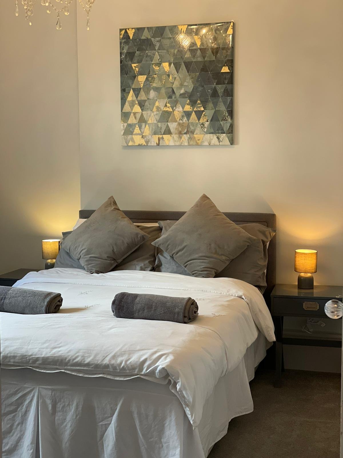 The living area supports relaxation and productivity with equal ease. Comfortable seating encourages downtime after work or sightseeing, while fast WiFi supports remote working and streaming without interruption. This setup suits guests booking furnished short let rentals in South London. The open kitchen allows complete independence during your stay. Guests prepare meals comfortably, reducing daily travel and dining costs. Therefore, the apartment appeals to travellers seeking self-catering accommodation in Croydon and Selhurst. Modern appliances and cookware simplify longer stays and support flexible routines.