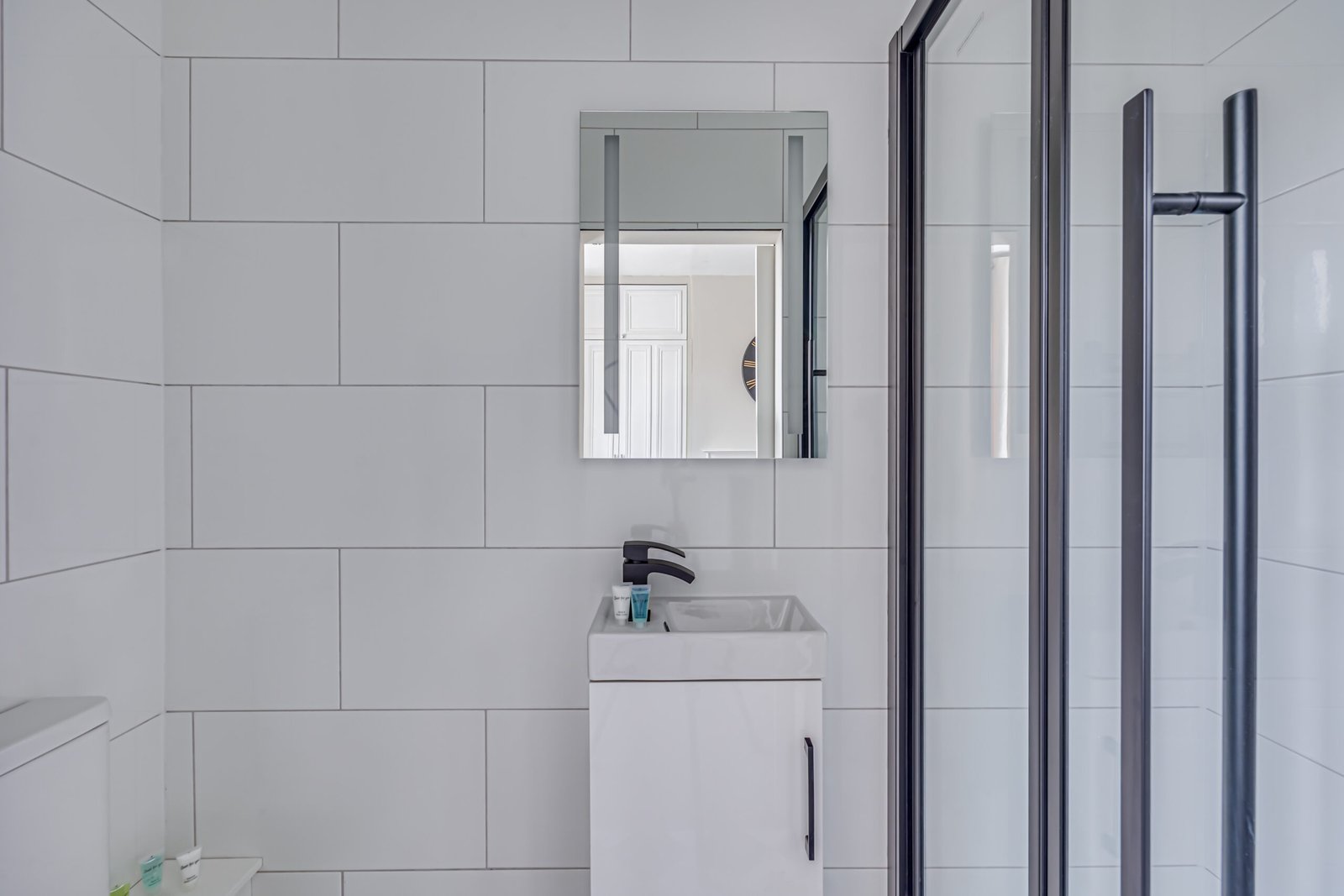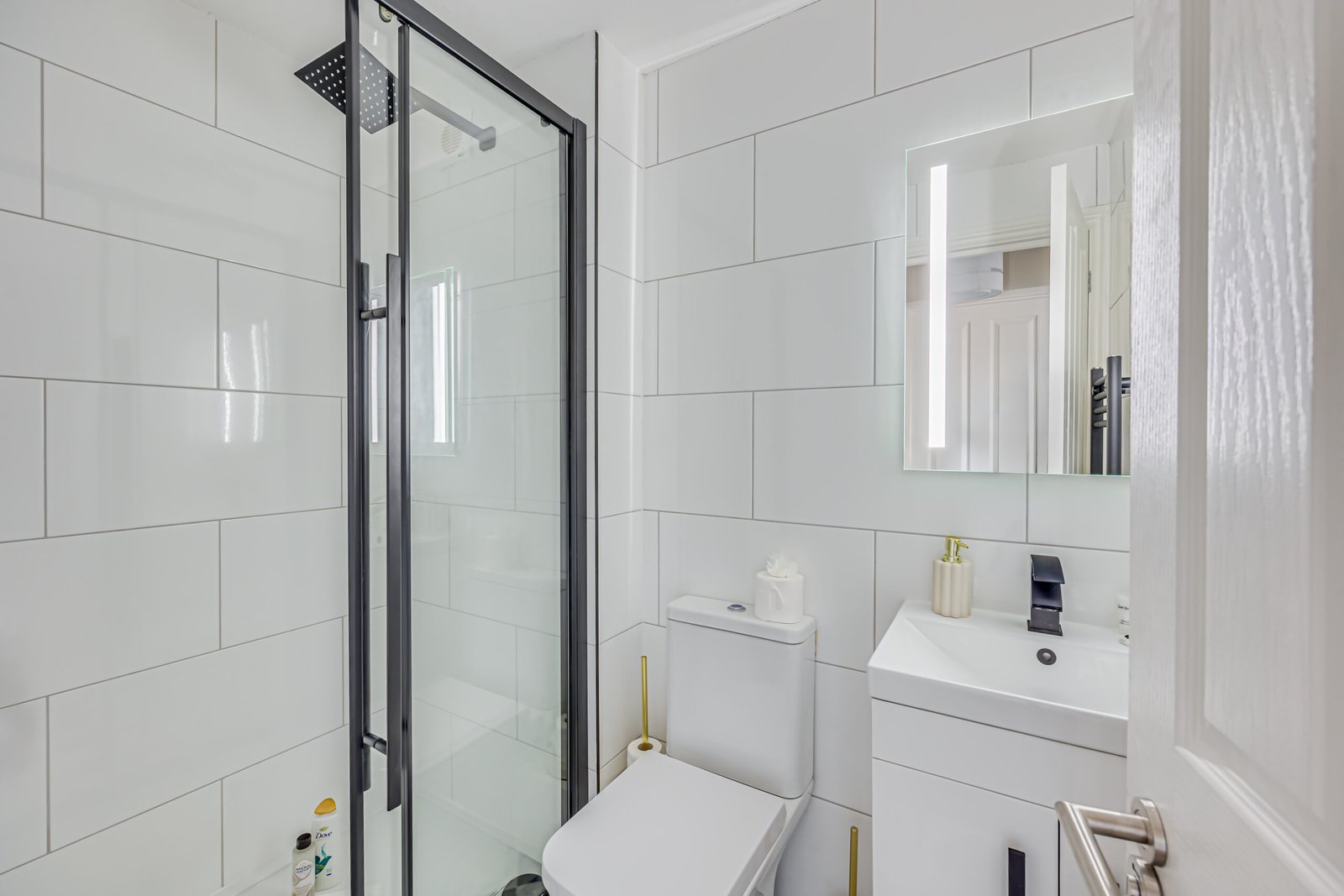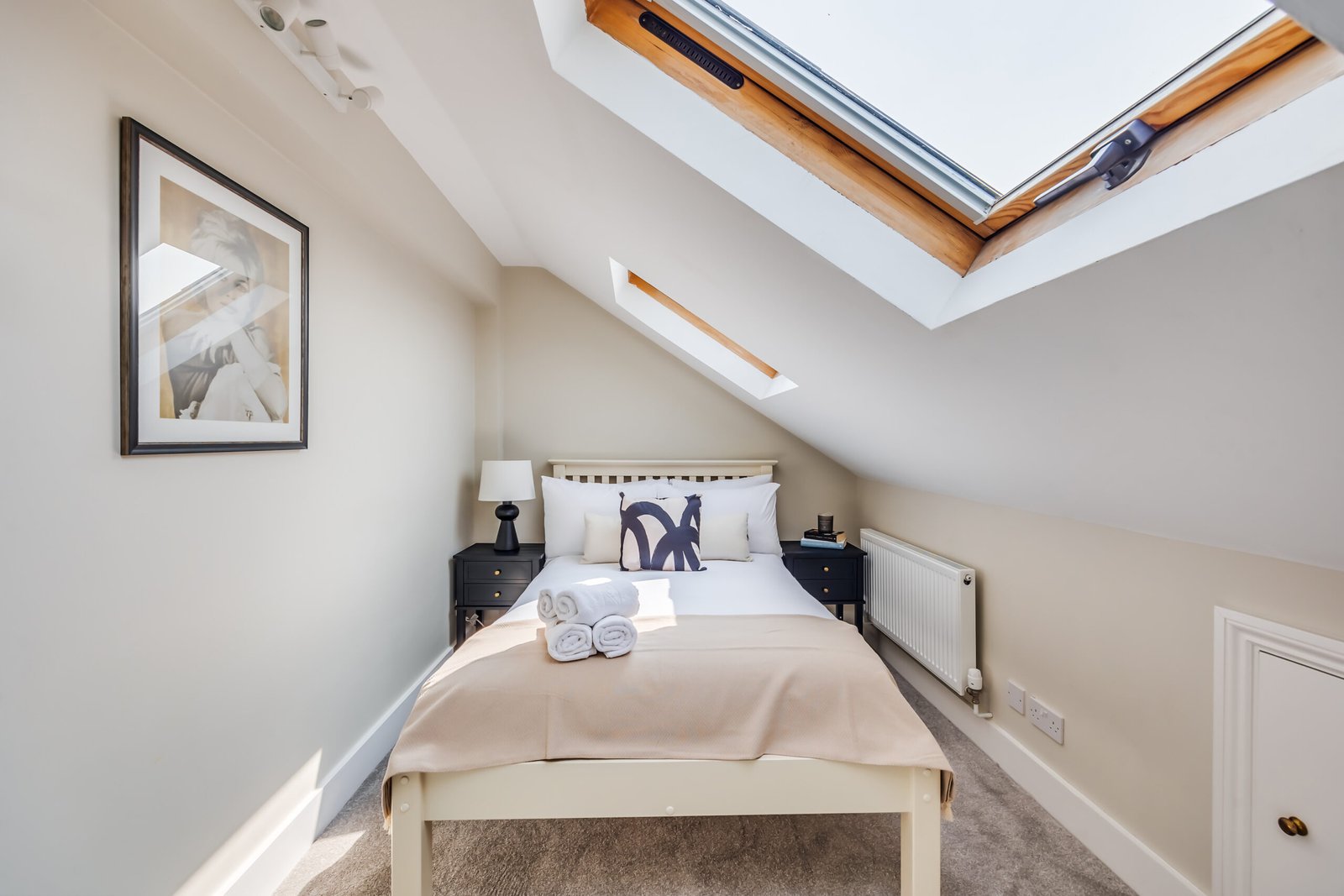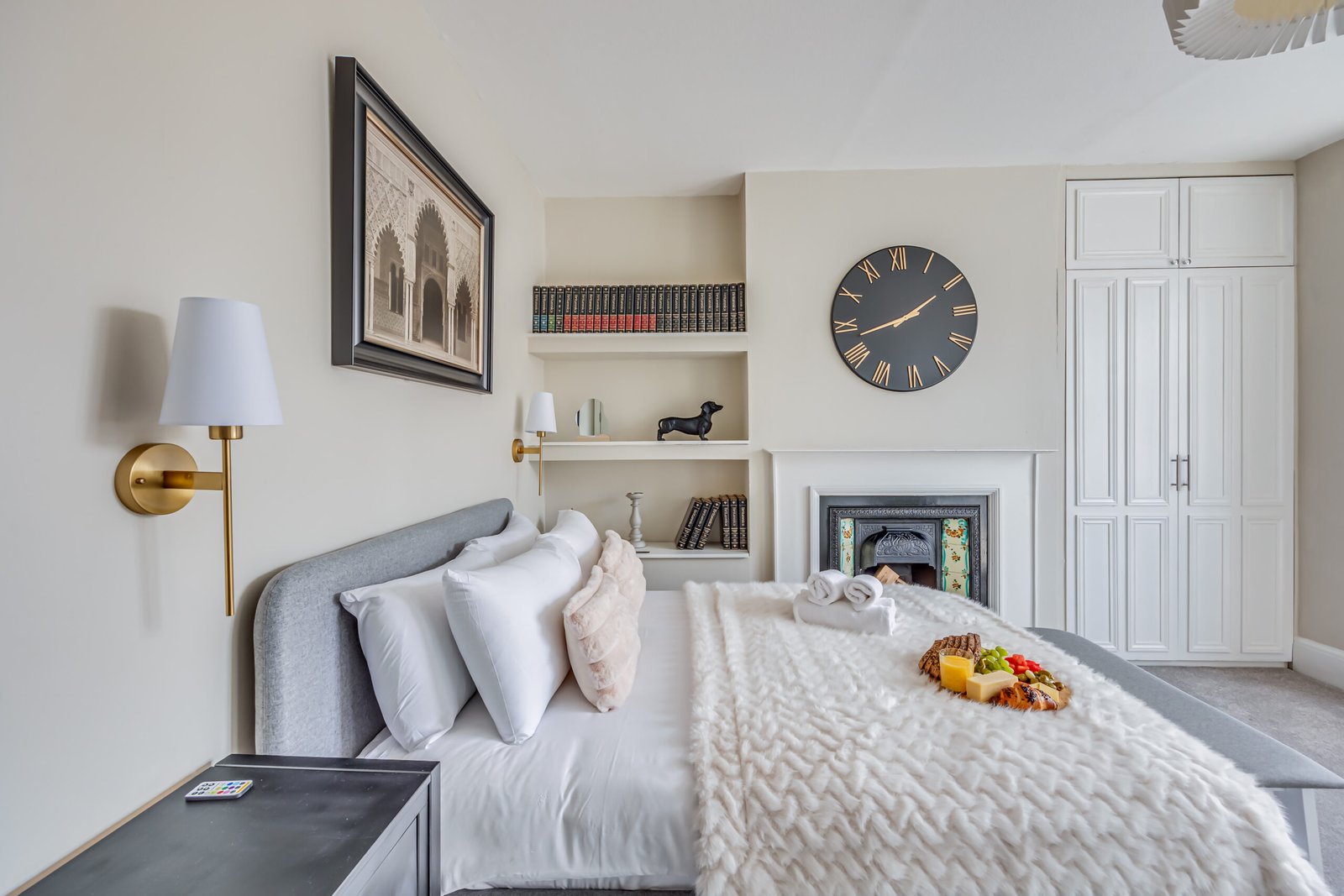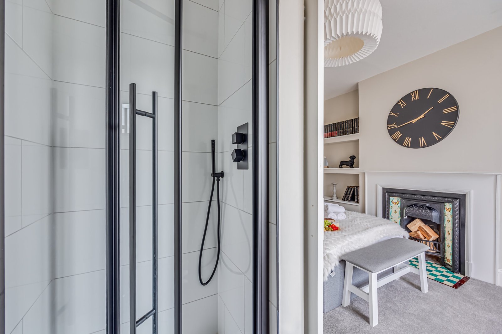 The ground floor includes a welcoming lounge with a feature fireplace, a cloakroom, and a dining room. A modern kitchen opens to a landscaped garden with a patio for outdoor relaxation or entertaining. The house features four bathrooms, ensuring convenience for larger groups. Each bedroom has comfortable double beds, with ensuite facilities in selected rooms. Additional amenities include a washer/dryer combo, a work desk, free Wi-Fi, and a Smart TV with Netflix and Disney+, making it suitable for corporate accommodation in Hammersmith. Private outdoor space enhances relaxation, and weekly housekeeping keeps the apartment fresh and ready.