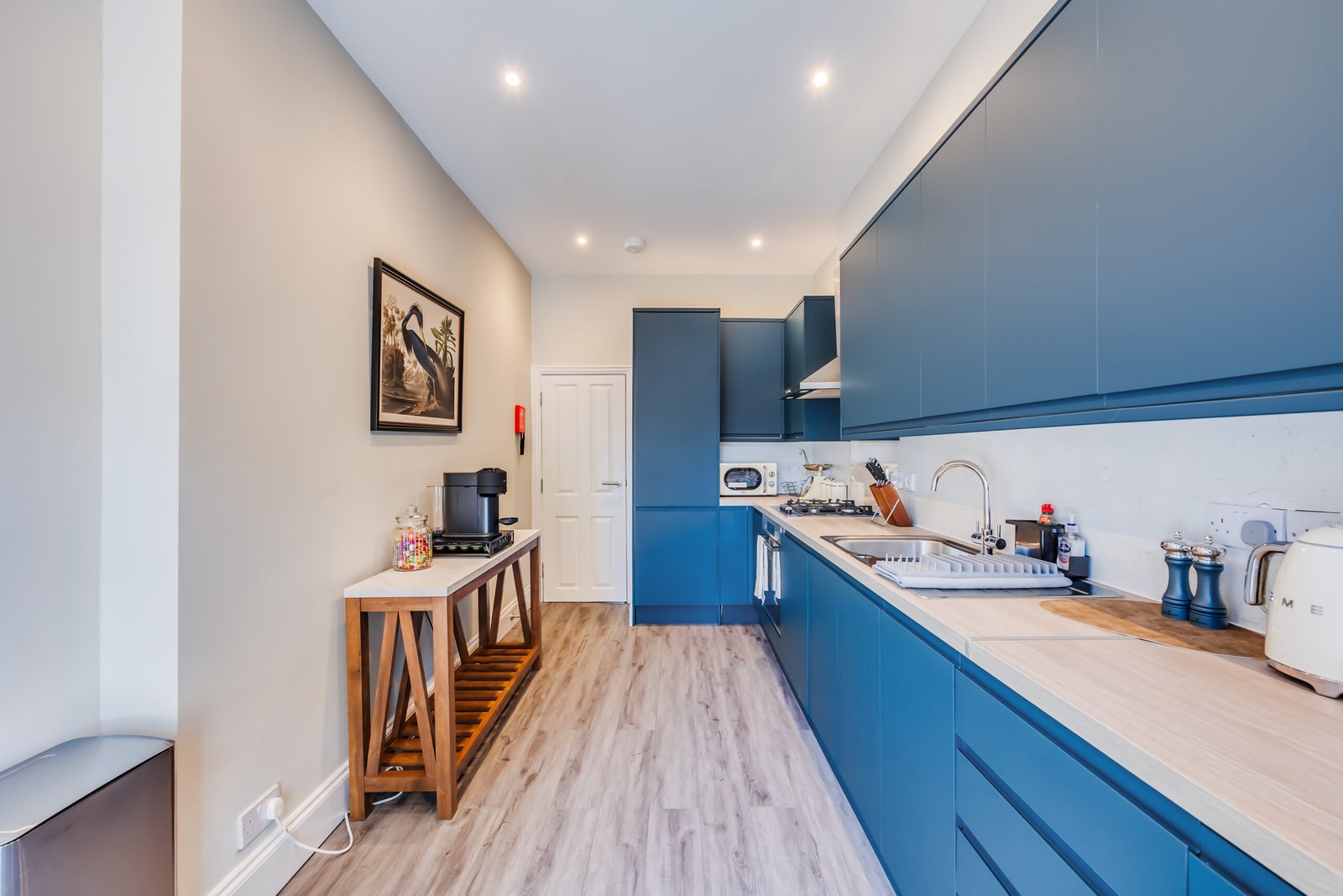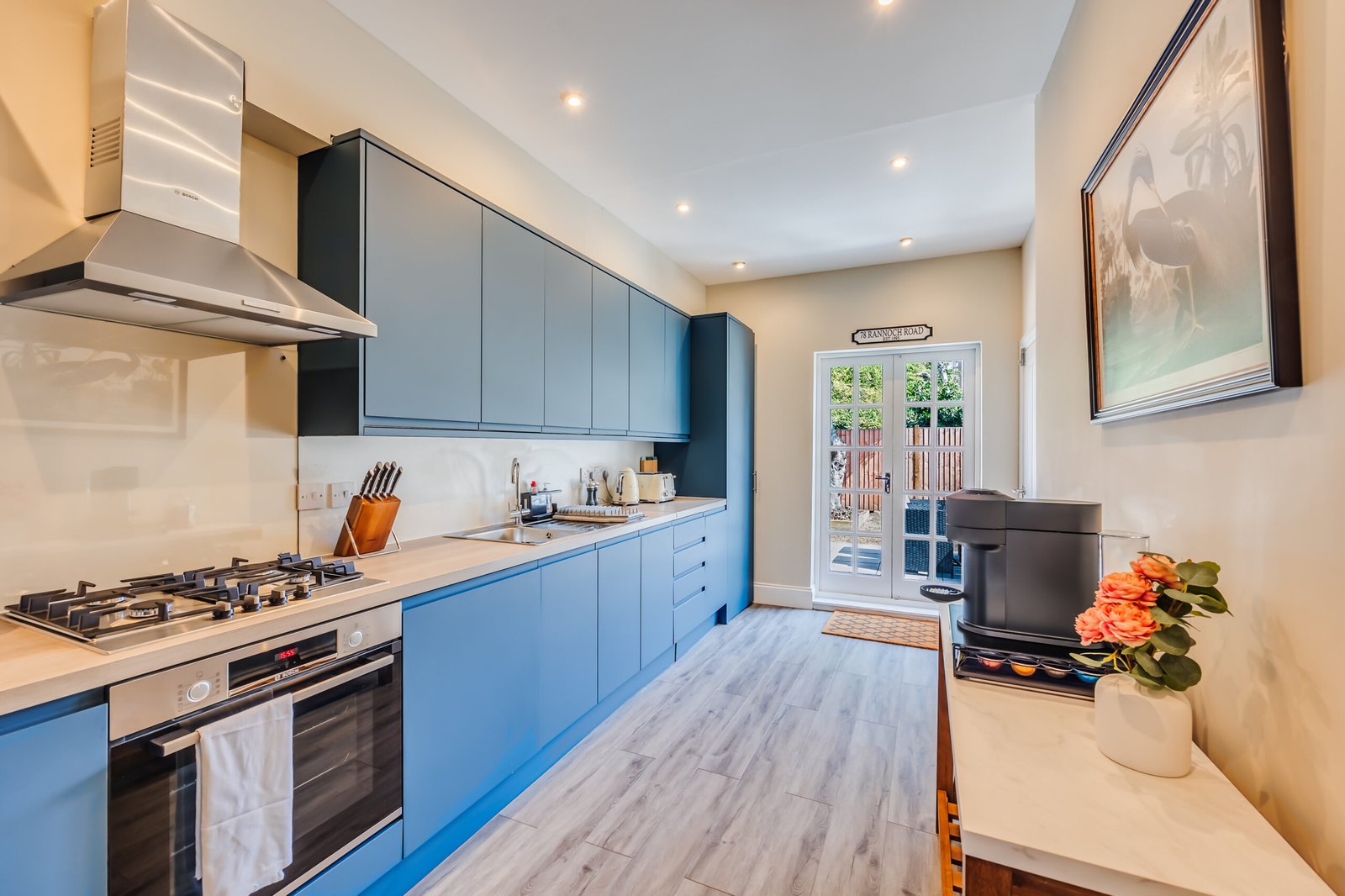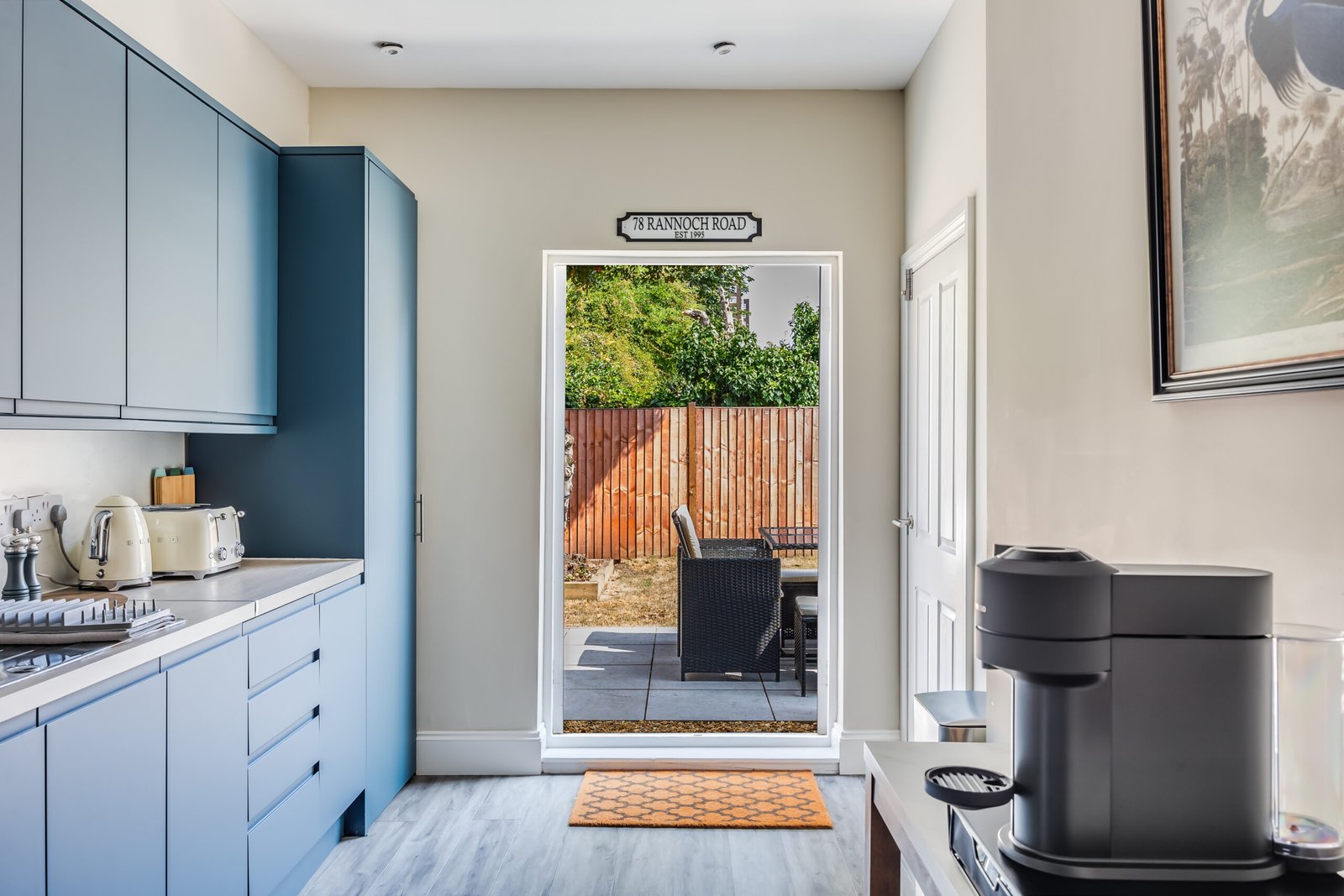 Rannoch Road Apartment offers stylish Hammersmith accommodation, perfect for families, business travellers, and groups. This five-bedroom house features modern design, high ceilings, and bright, spacious rooms. The property comfortably accommodates guests for short or extended stays, combining elegance and practicality. The house provides convenient access to the amenities along the River Thames. Whilst the transport hub at Hammersmith Broadway is easily accessible where the bus terminus provides links throughout London and multiple tube Lines (District, Piccadilly, Hammersmith and City and the Circle Line) converge.