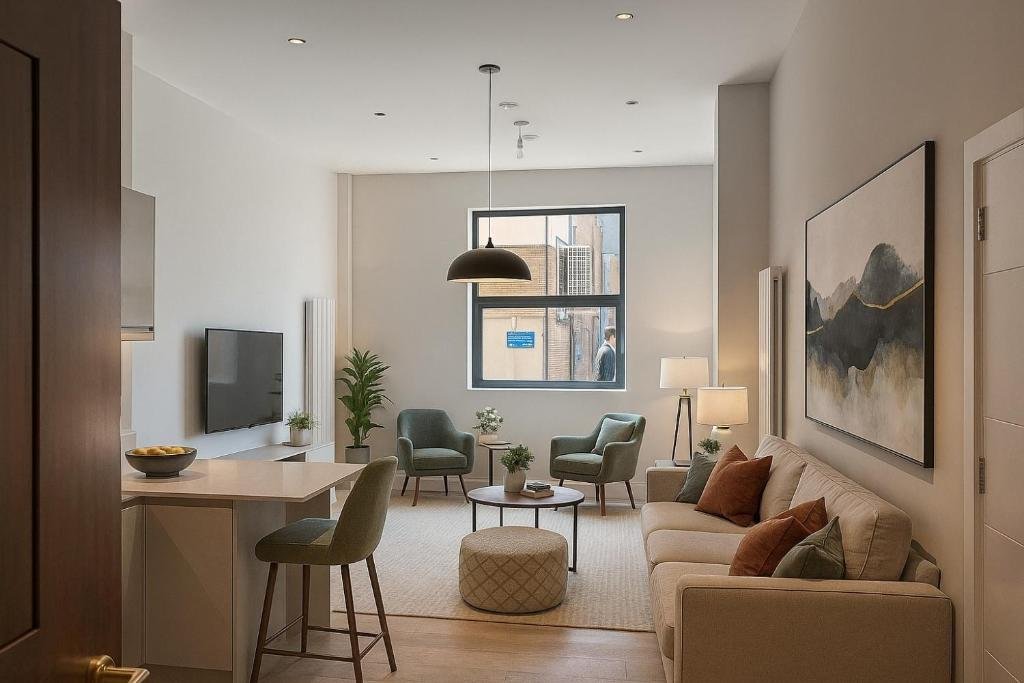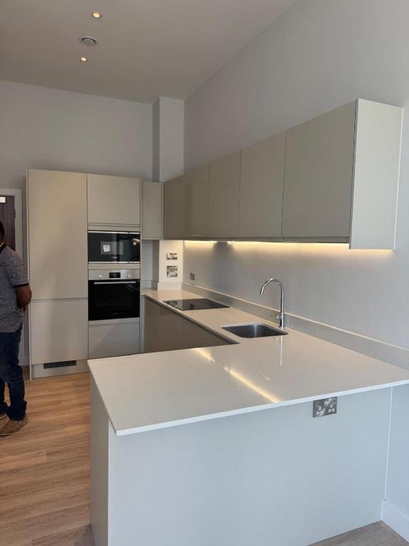 Discover our Holiday Rentals Uxbridge, Belmont Serviced Accommodation gem at 33 Belmont, London UB8 1QT, a modern and cosy one‑bedroom apartment perfect for couples, solo travellers, or business guests. The bright living area is spacious and inviting. The bedroom ensures restful nights, while the fully equipped kitchen allows you to prepare meals with ease. The bathroom features sleek, modern fixtures. This stylish corporate accommodation in Uxbridge offers comfort for both relaxation and work.