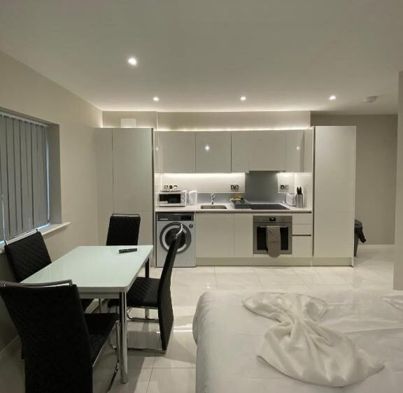 Lena Extended Stays Residences offer refined Hammersmith short let rentals designed for professionals, relocations, and extended London stays. Located in the heart of Hammersmith W6, these contemporary apartments provide a calm yet connected base in West London. Each apartment features a fully equipped kitchen, therefore supporting self-catering accommodation in West London for short or longer stays. Guests benefit from in-unit washer dryers, smart TVs, fast Wi-Fi, and weekly housekeeping. Consequently, Lena Residences work perfectly for holiday rentals for business travellers who value privacy, independence, and reliable amenities.