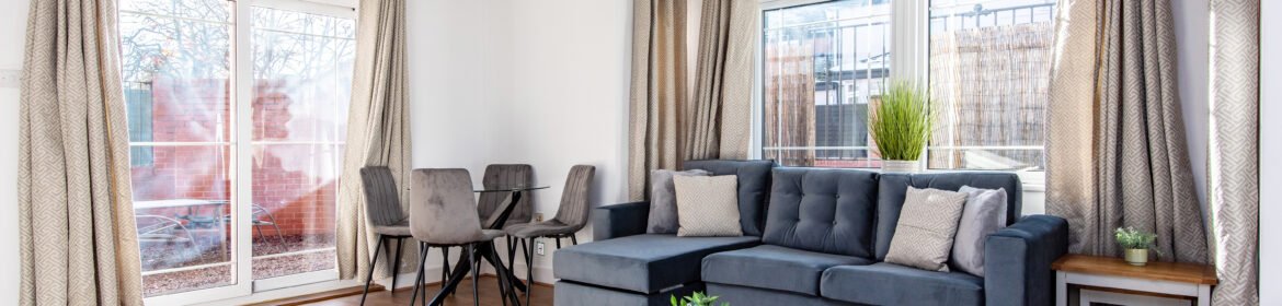 A dining area with seating creates a welcoming space for meals. The apartment also offers a comfortable lounge with a sofa bed for additional guests. Outside, guests relax in a private seating area. Travellers choosing Nottingham Short Term Rentals enjoy comfort, flexibility, and a well-connected location. Visitors often explore nearby Nottingham serviced apartments for extended stays.
