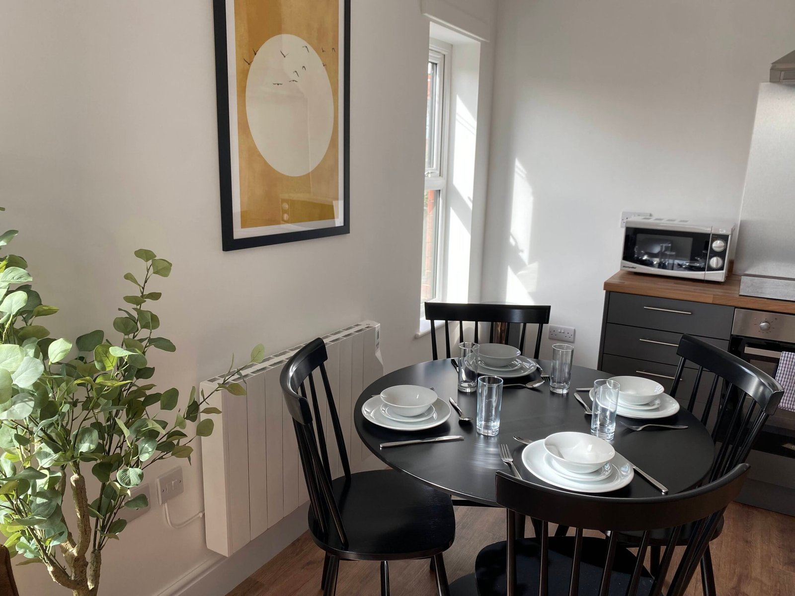 Each serviced accommodation features spacious living areas, modern furnishings, and fully equipped kitchens designed for short or extended stays. Guests enjoy high-speed Wi-Fi, smart TVs, and premium bedding that ensures restful nights. The open-plan layout offers plenty of natural light, creating a relaxing and homely atmosphere. Moreover, each of these self-catering accommodations in Nottinghamshire has a full size kitchen allowing you to cook your own meals. Benefit from essential appliances including ovens, microwaves, fridges, and washing machines, making them ideal for both business and leisure stays.