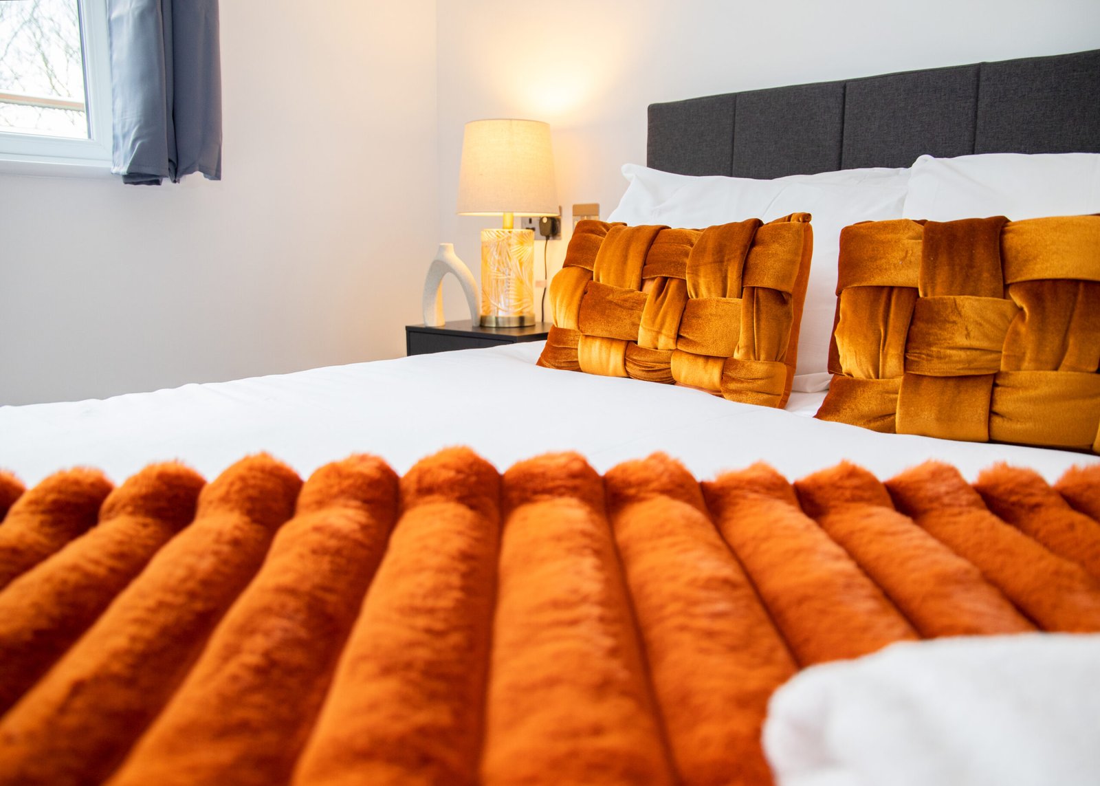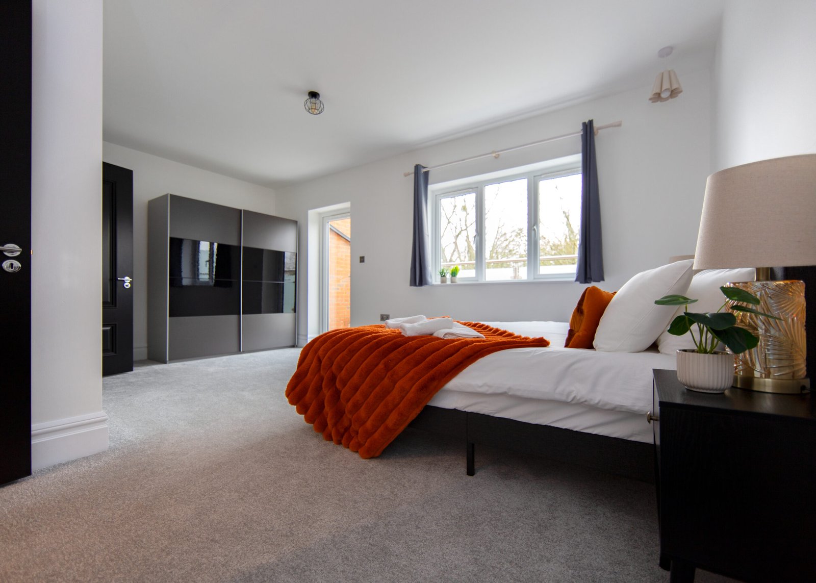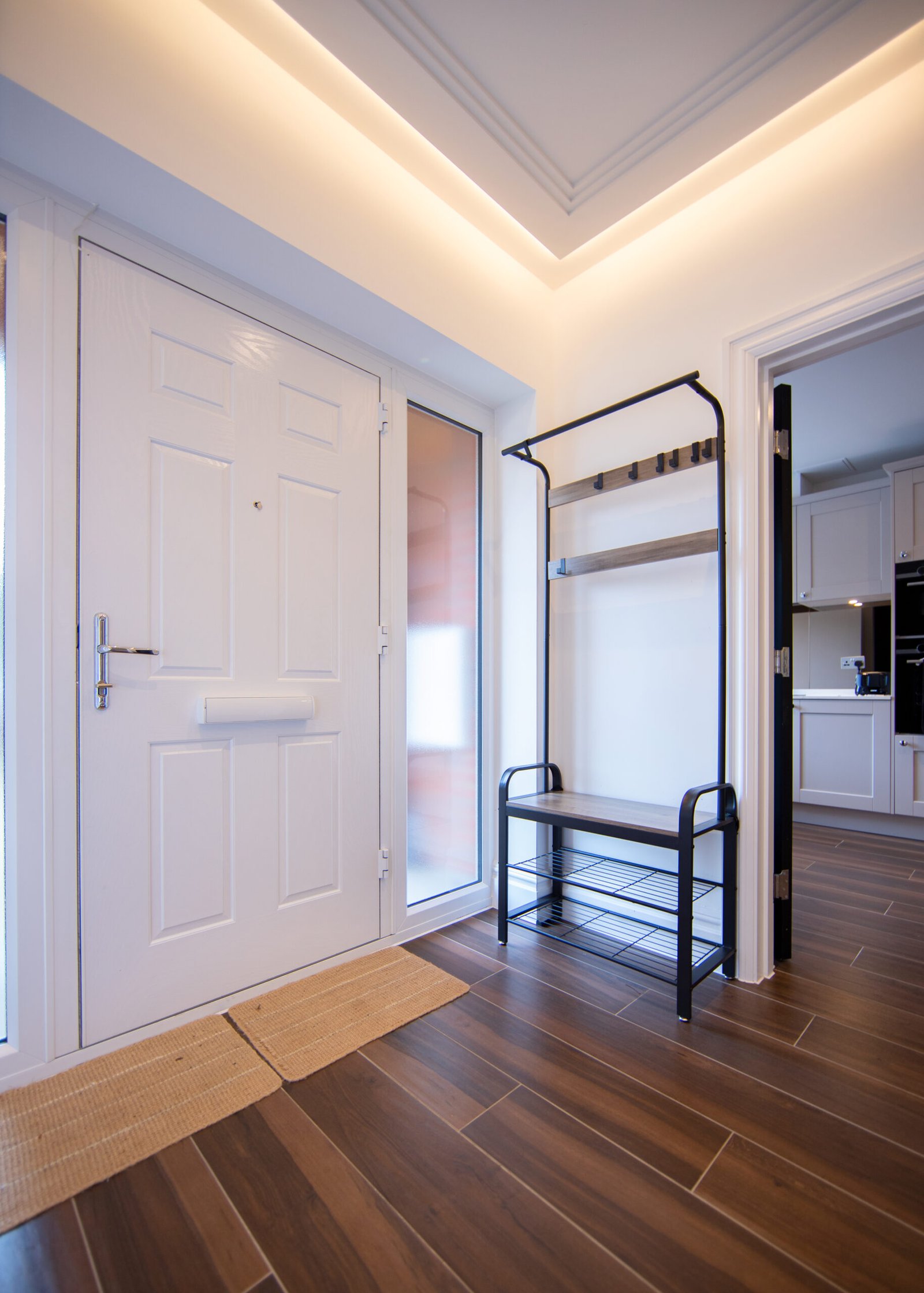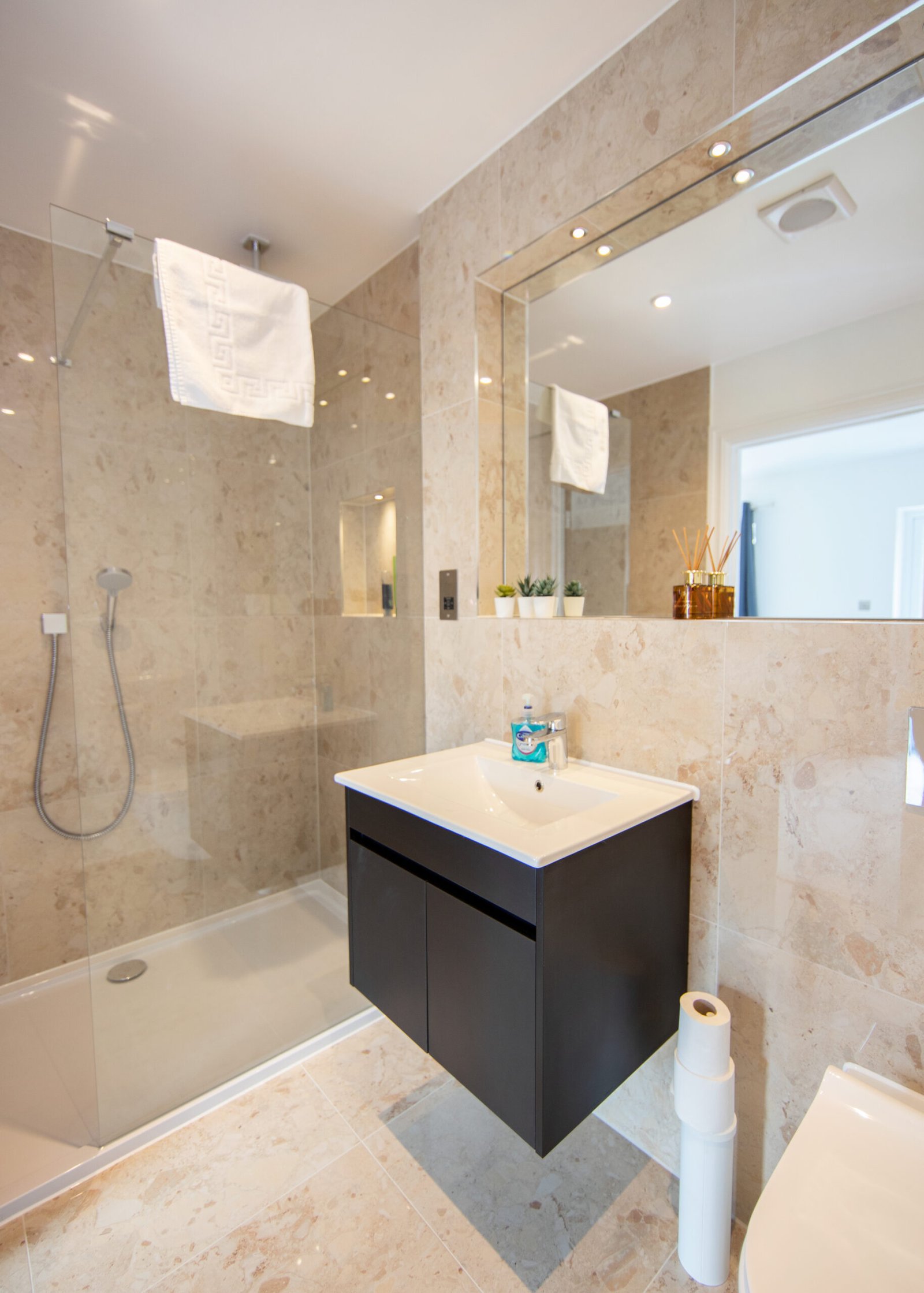 Guests relax in a comfortable lounge with Smart TV and high-speed Wi-Fi. The fully equipped kitchen includes modern appliances for easy self-catering. Upstairs, four double bedrooms offer en-suite bathrooms, while a single bedroom provides additional flexibility. Travellers choosing Windsor Holiday Homes benefit from space, privacy, and convenience.