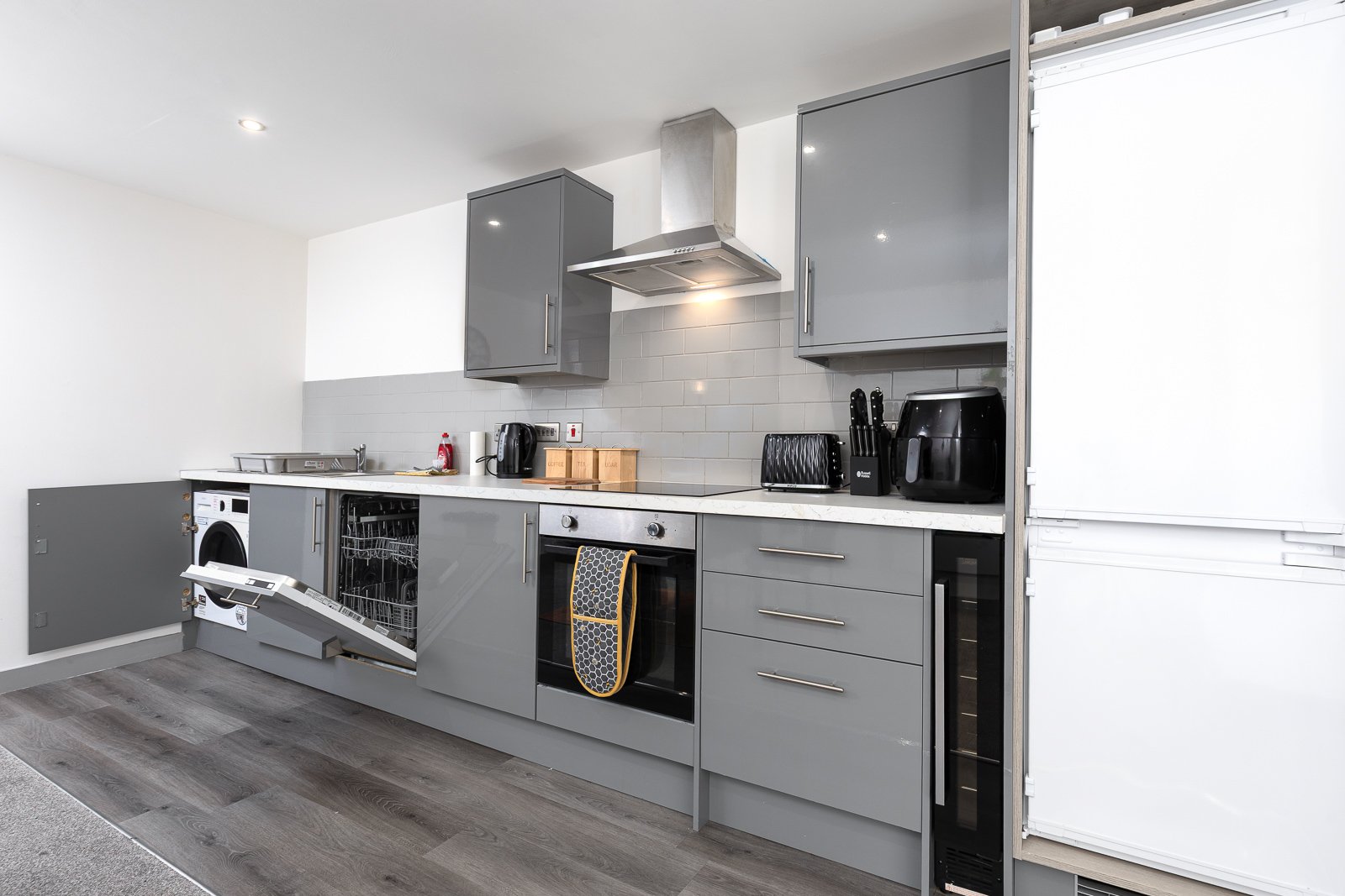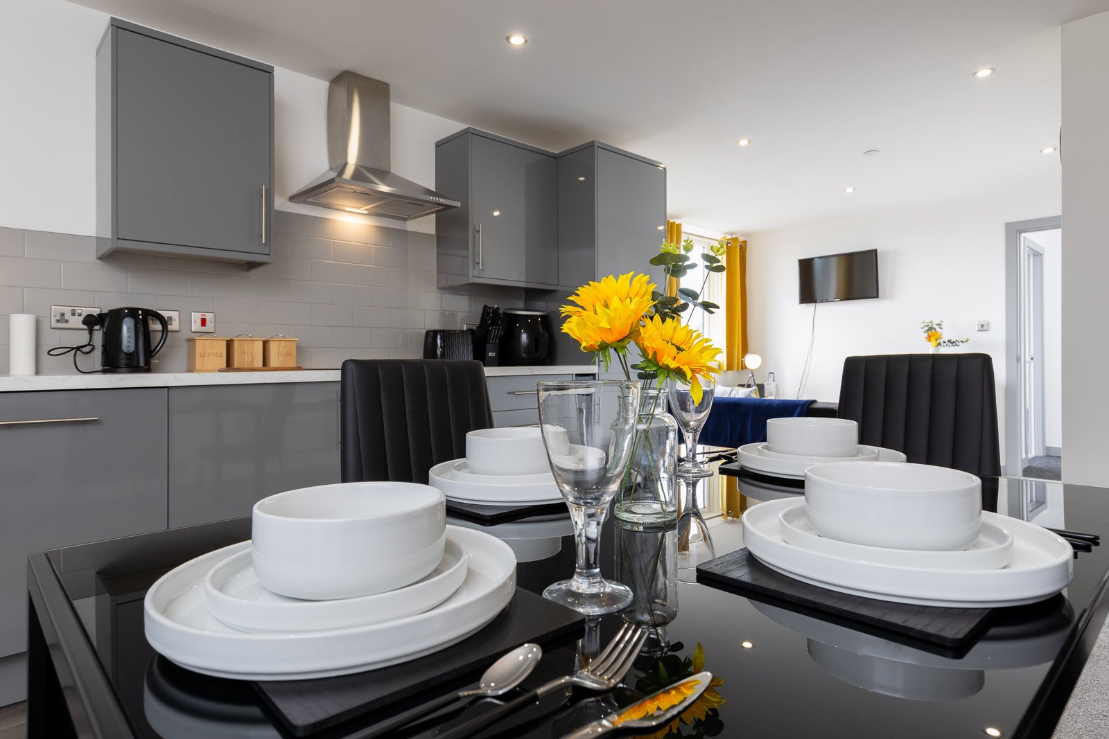 Discover stylish Yorkshire Holiday Rentals at Yeadon Serviced Apartments, designed for families, groups, and business travellers. Each apartment feature a comfortable bedroom with double bed and additional sofa-bed for additional guests. Whether visiting for business or leisure, these short let apartments in Yeadon provide a home-like environment. Benefit from close proximity to Leeds Airport, restaurants, pubs, supermarkets and transport links. Leeds Train Station connects to Manchester, York, and London. The fully equipped kitchen allows guests to prepare meals easily.